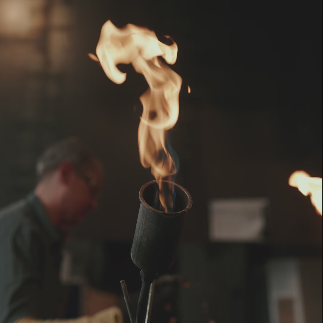 The tour of Holmegaard Værk starts with a meeting with the glassblowers, where you can experience the transformation of the liquid material. Here, in the middle of the glass hut's historic space, generations of glassworkers have drawn stems, shaped feet and blown glass for almost 200 years.