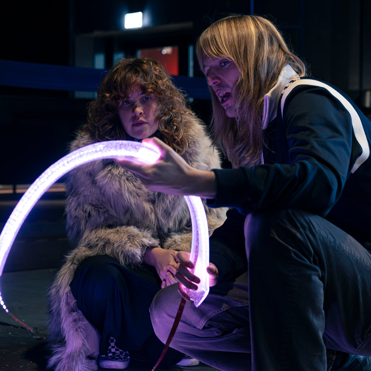 Med installationen New Galaxy forvandler kunstner Esben Weile Kjær (f. 1992) den klassiske venetianske lysekrone til en kosmisk eksplosion af farve, energi og bevægelse i ny udstilling på Holmegaard Værk.