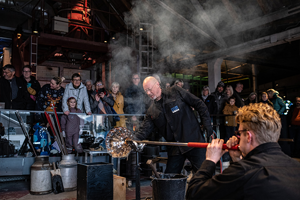 Kom og se, når vores dygtige glaspustere sætter alle kræfter ind på at skabe Næstveds (måske Danmarks) største snemand i glas!